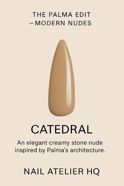 Inspired by the stunning architecture of Palma's cathedral, Catedral features a sophisticated creamy beige nude shade that embodies timeless elegance and Mediterranean beauty.